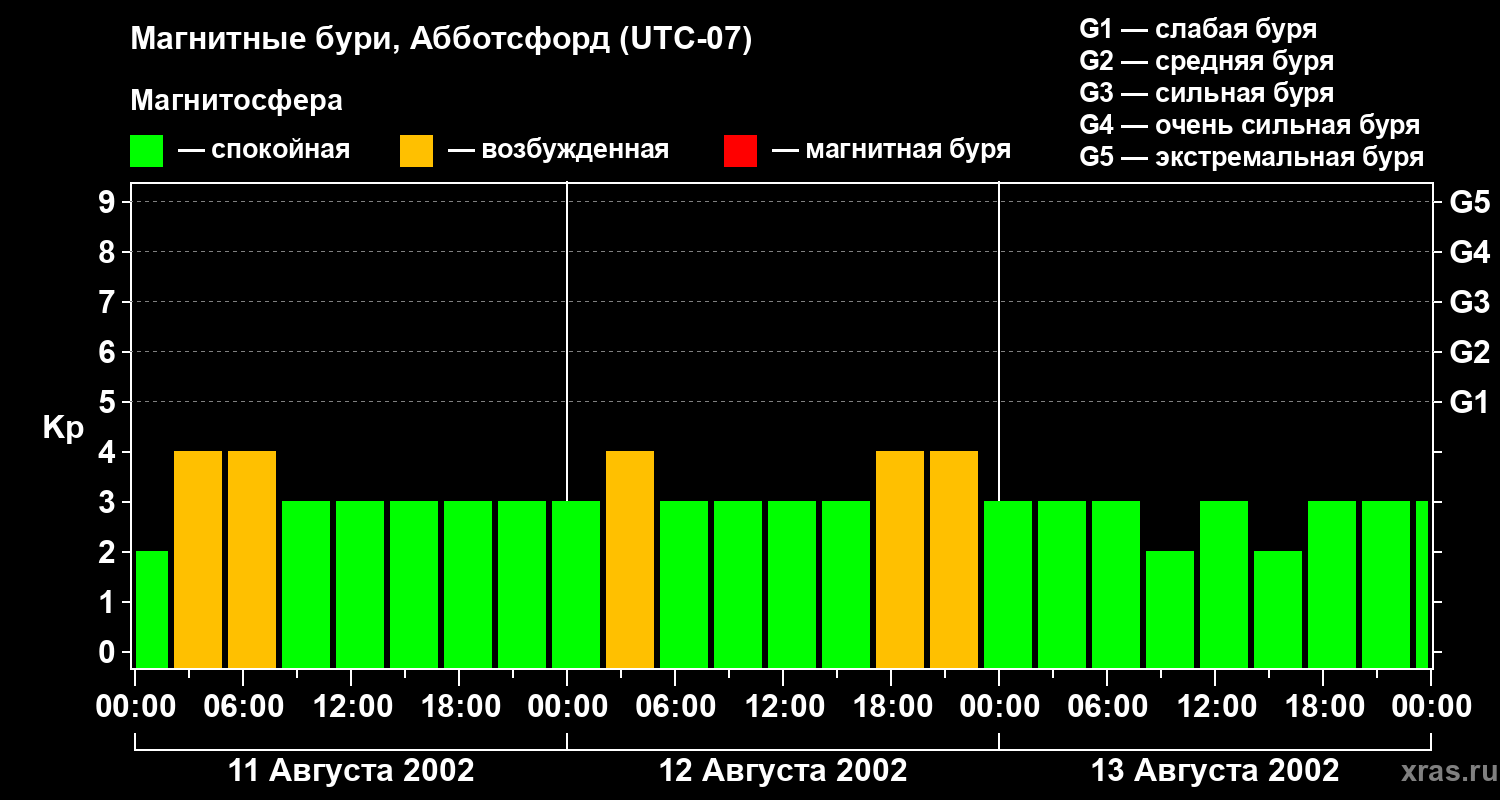 Магнитные бури в Абботсфорде 13 августа 2002 года