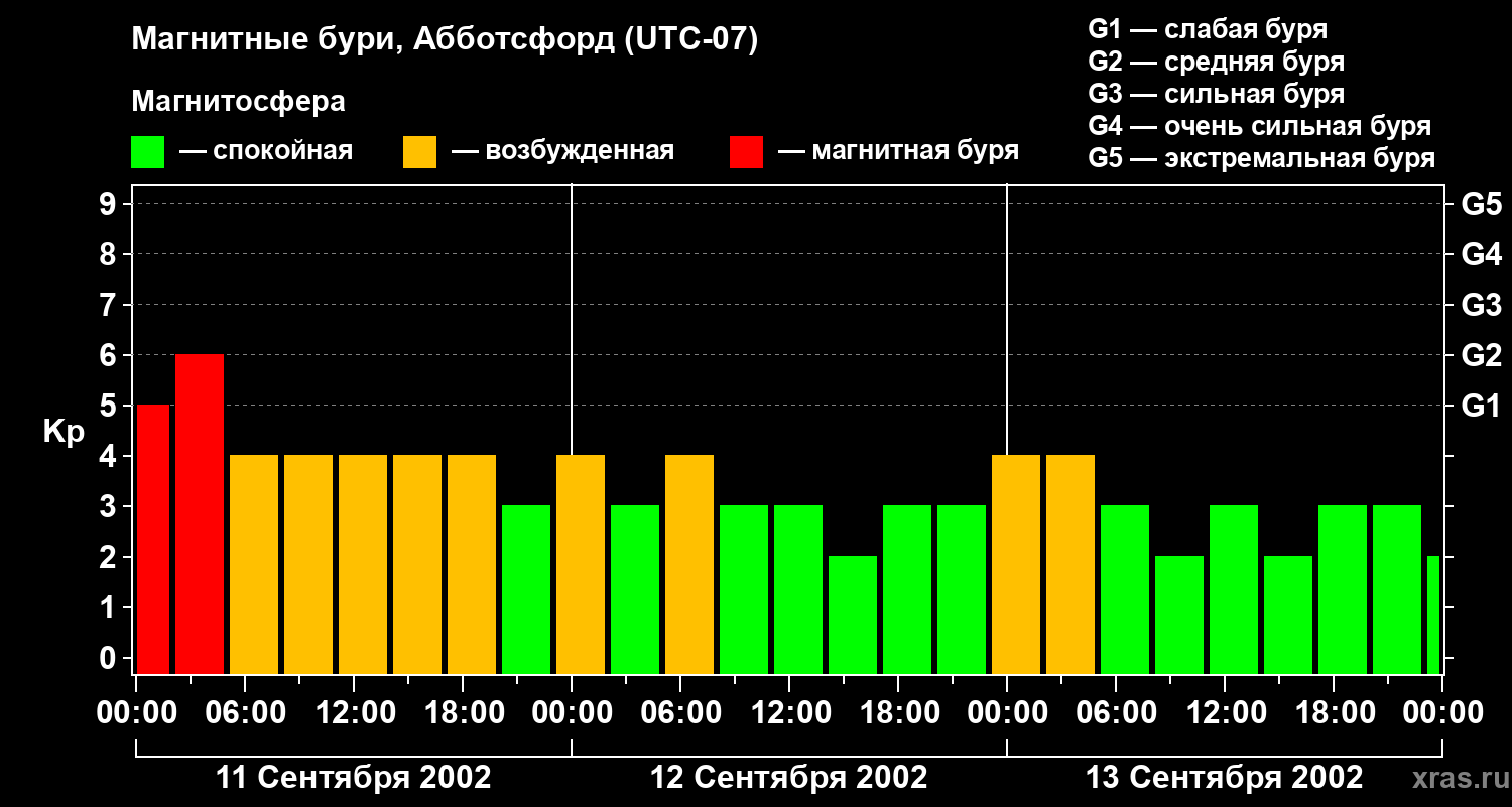Магнитные бури в Абботсфорде 13 сентября 2002 года
