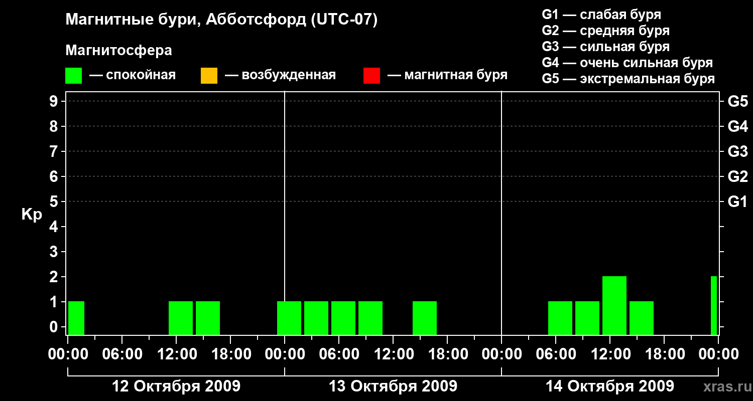 Магнитные бури в Абботсфорде 14 октября 2009 года
