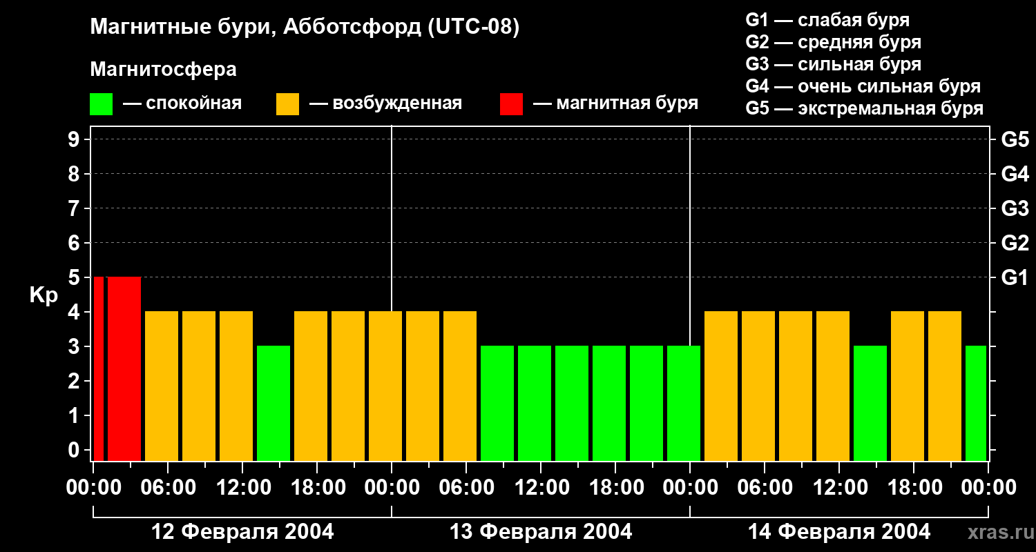 Магнитные бури в Абботсфорде — 14 февраля 2004 года