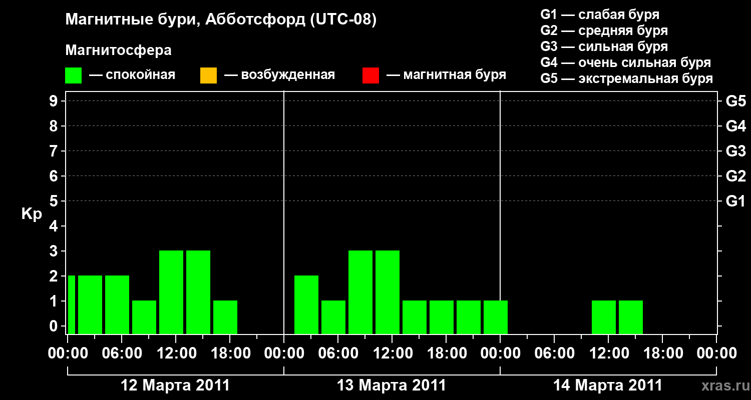 Магнитные бури в Абботсфорде 14 марта 2011 года