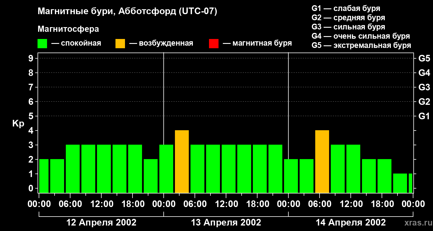 Магнитные бури в Абботсфорде — 14 апреля 2002 года