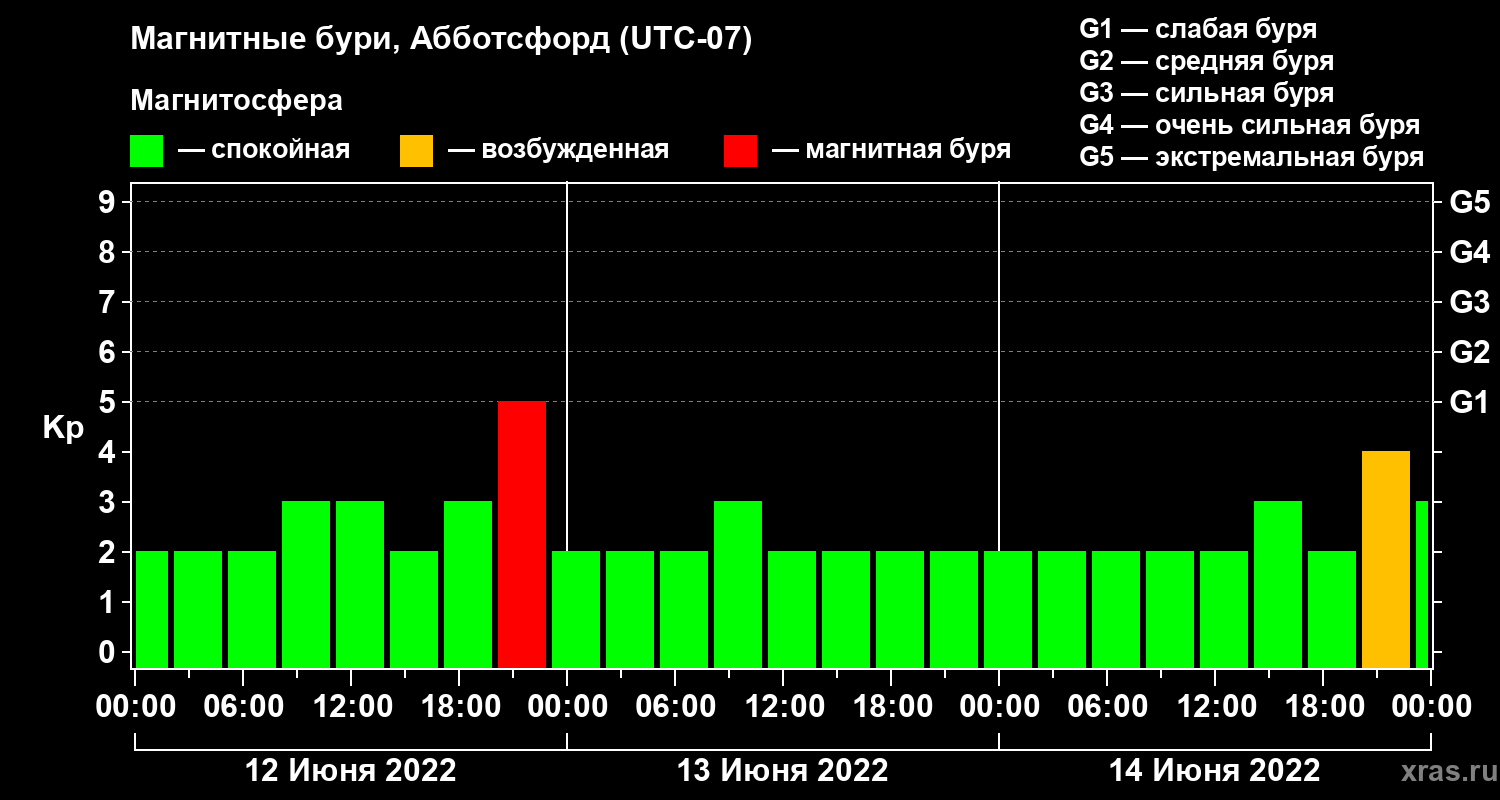 Магнитные бури в Абботсфорде 14 июня 2022 года