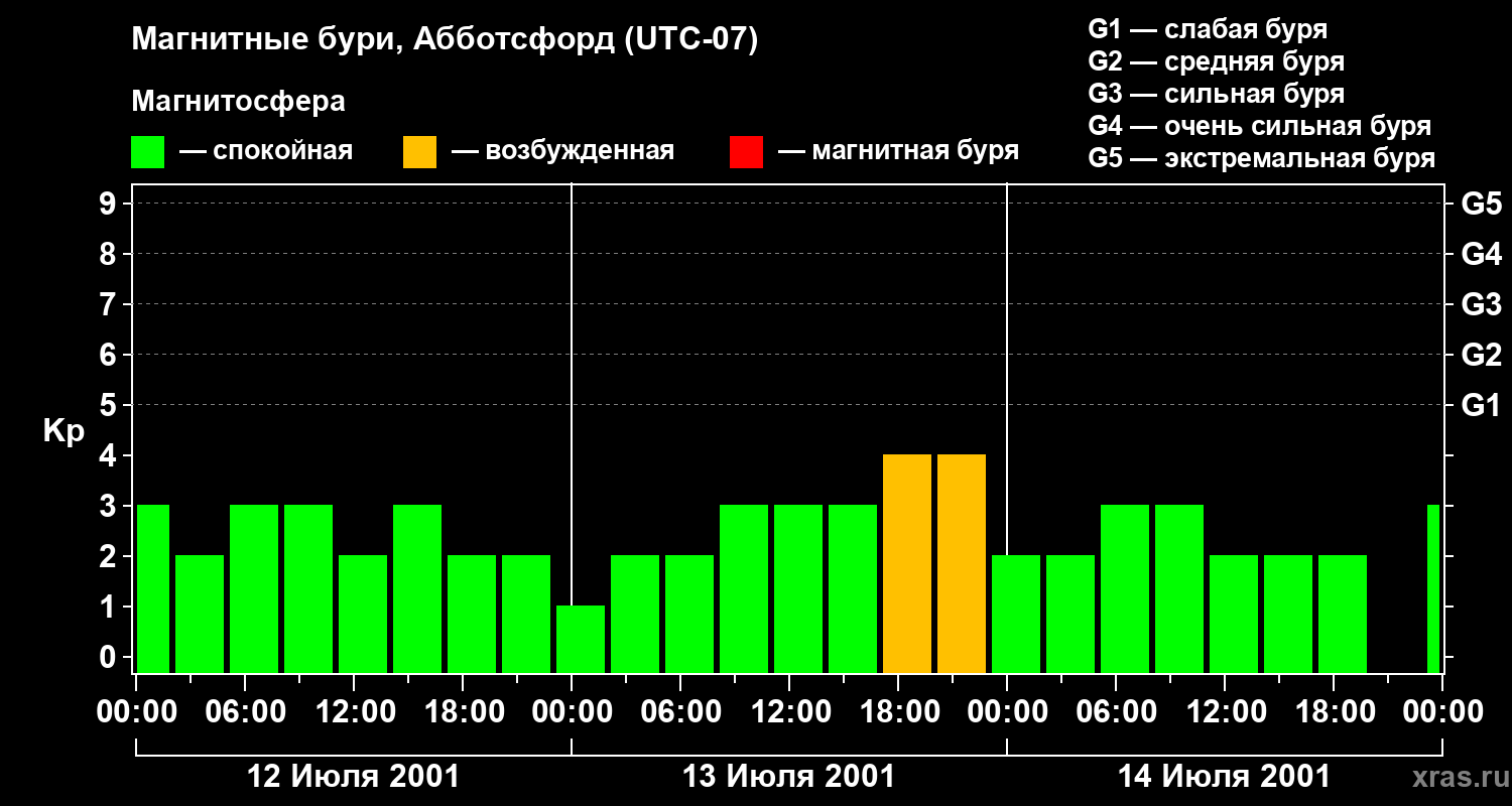Магнитные бури в Абботсфорде 14 июля 2001 года