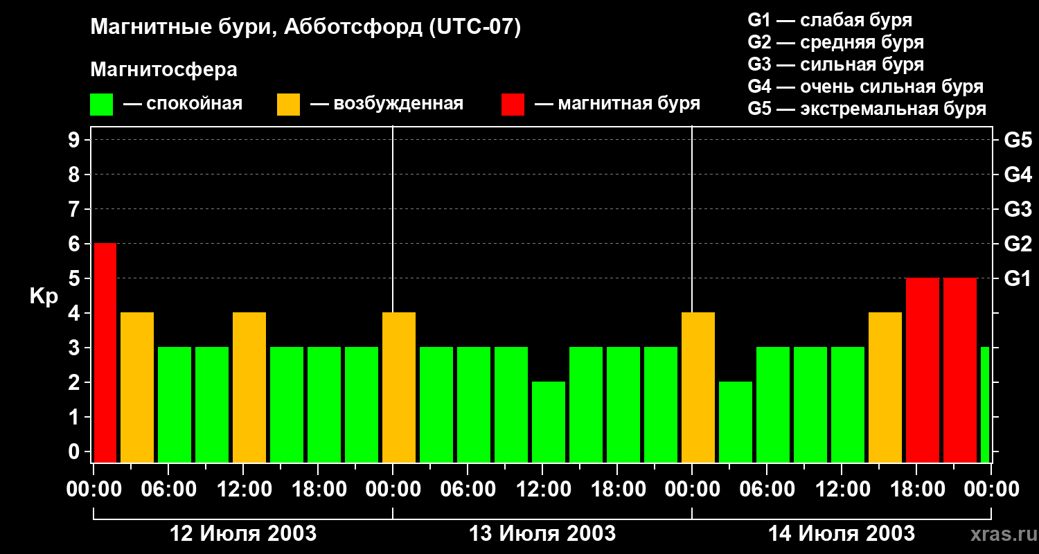 Магнитные бури в Абботсфорде — 14 июля 2003 года
