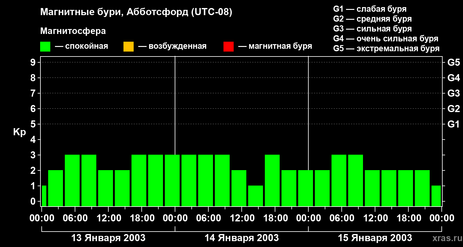 Магнитные бури в Абботсфорде — 15 января 2003 года