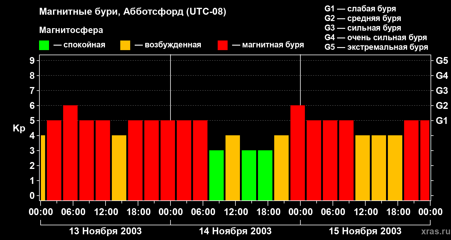 Магнитные бури в Абботсфорде 15 ноября 2003 года