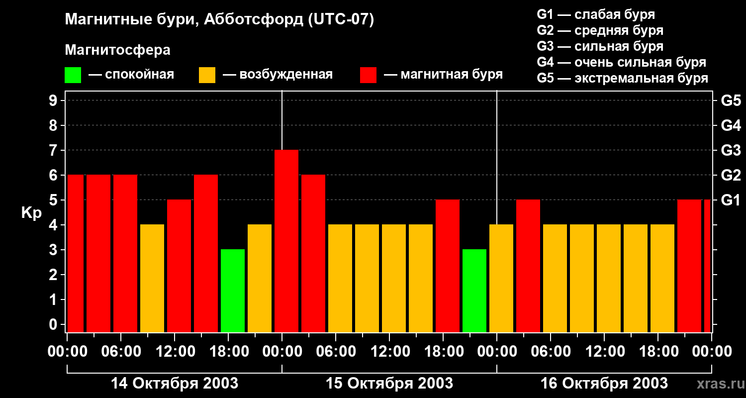 Магнитные бури в Абботсфорде 16 октября 2003 года