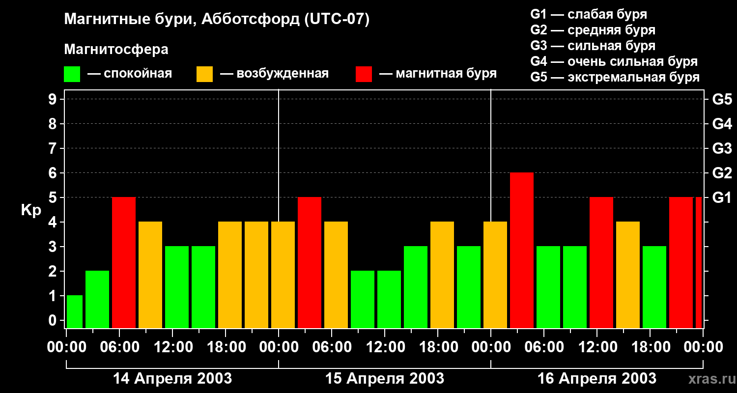 Магнитные бури в Абботсфорде — 16 апреля 2003 года