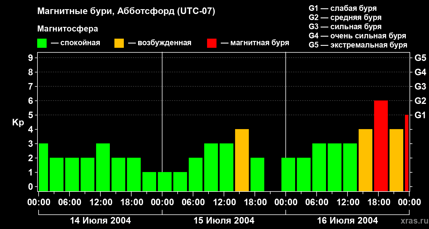 Магнитные бури в Абботсфорде 16 июля 2004 года