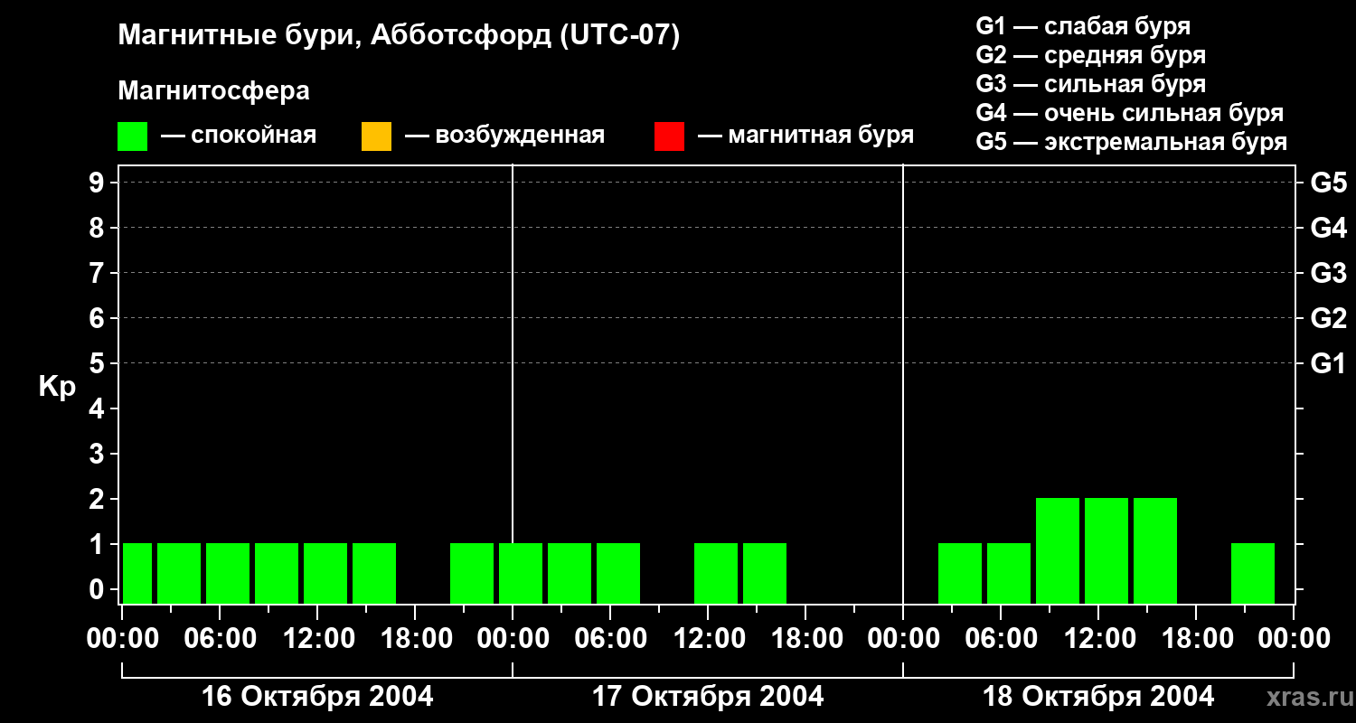 Магнитные бури в Абботсфорде 18 октября 2004 года