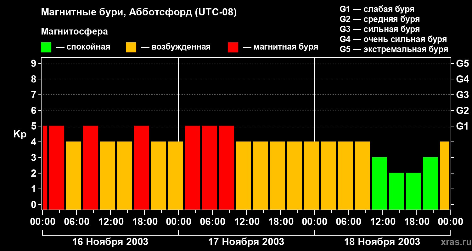 Магнитные бури в Абботсфорде 18 ноября 2003 года