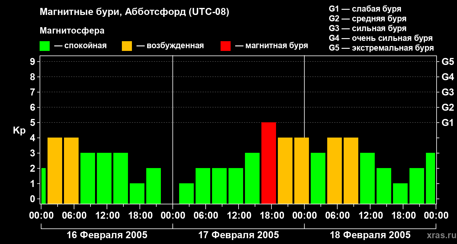 Магнитные бури в Абботсфорде в феврале 2005 года