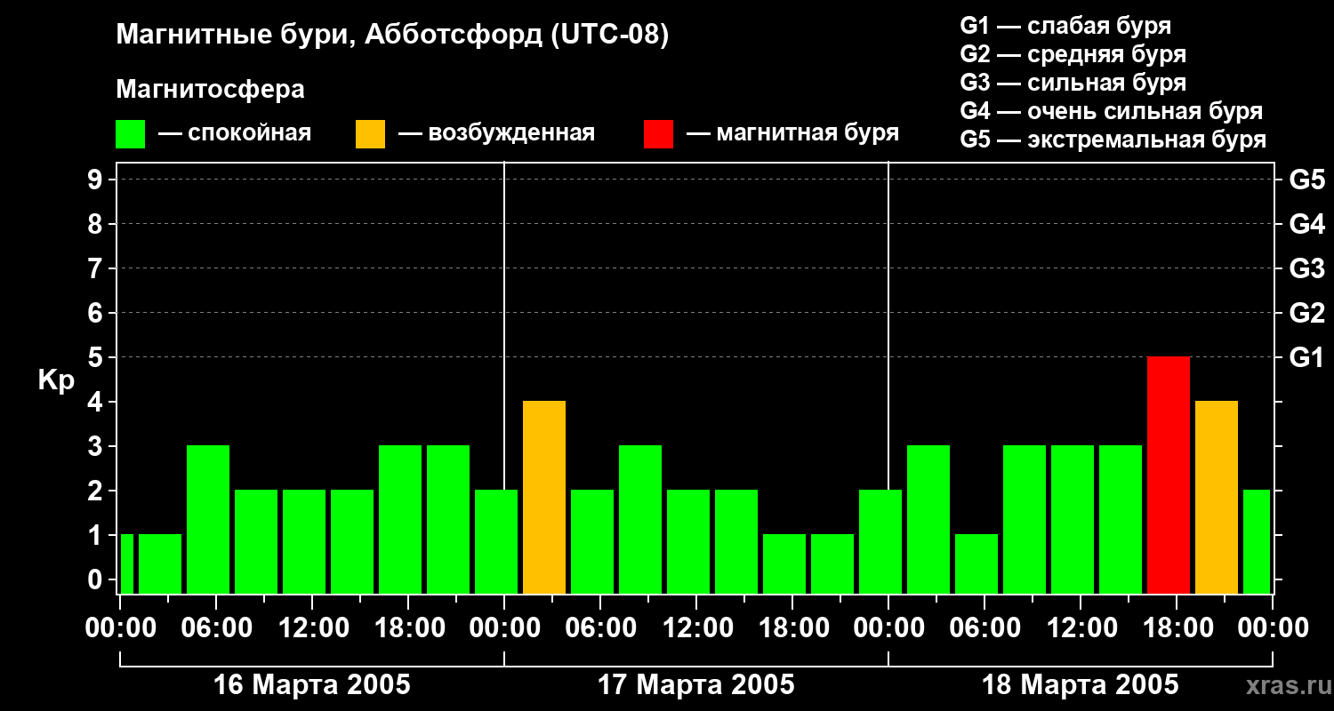 Магнитные бури в Абботсфорде — 18 марта 2005 года