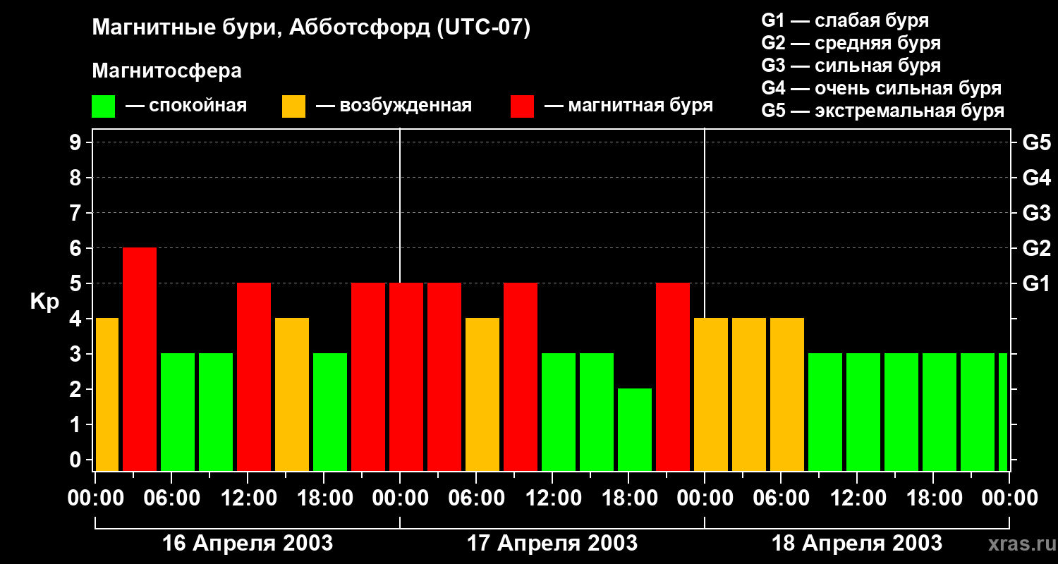 Магнитные бури в Абботсфорде в апреле 2003 года