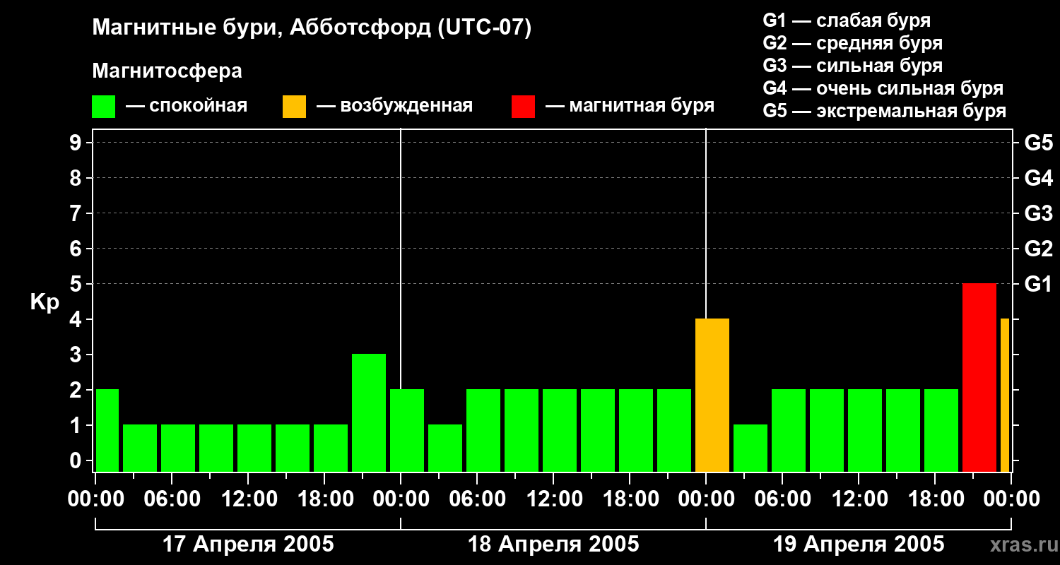 Магнитные бури в Абботсфорде — 19 апреля 2005 года