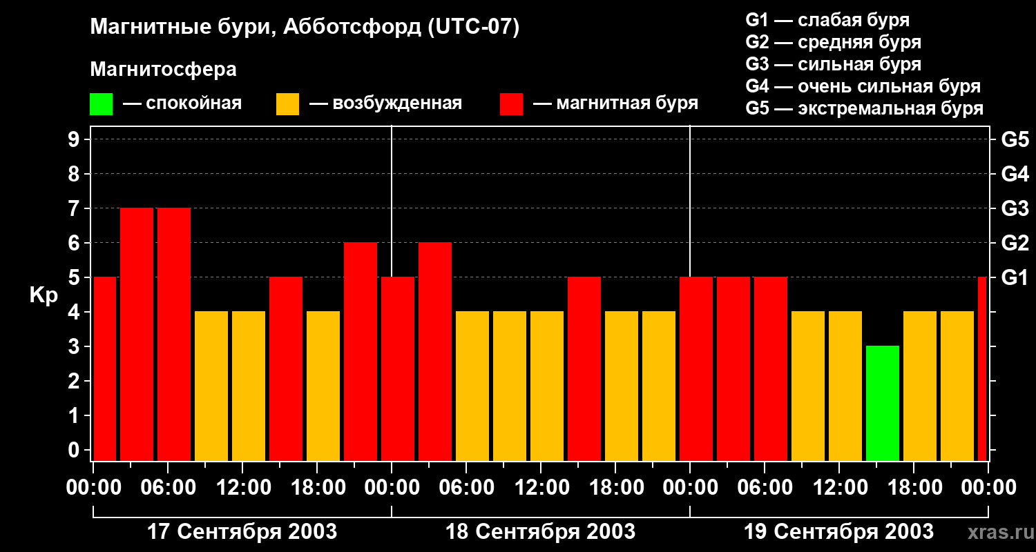 Магнитные бури в Абботсфорде 19 сентября 2003 года