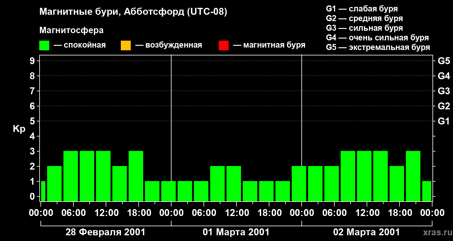 Магнитные бури в Абботсфорде 2 марта 2001 года
