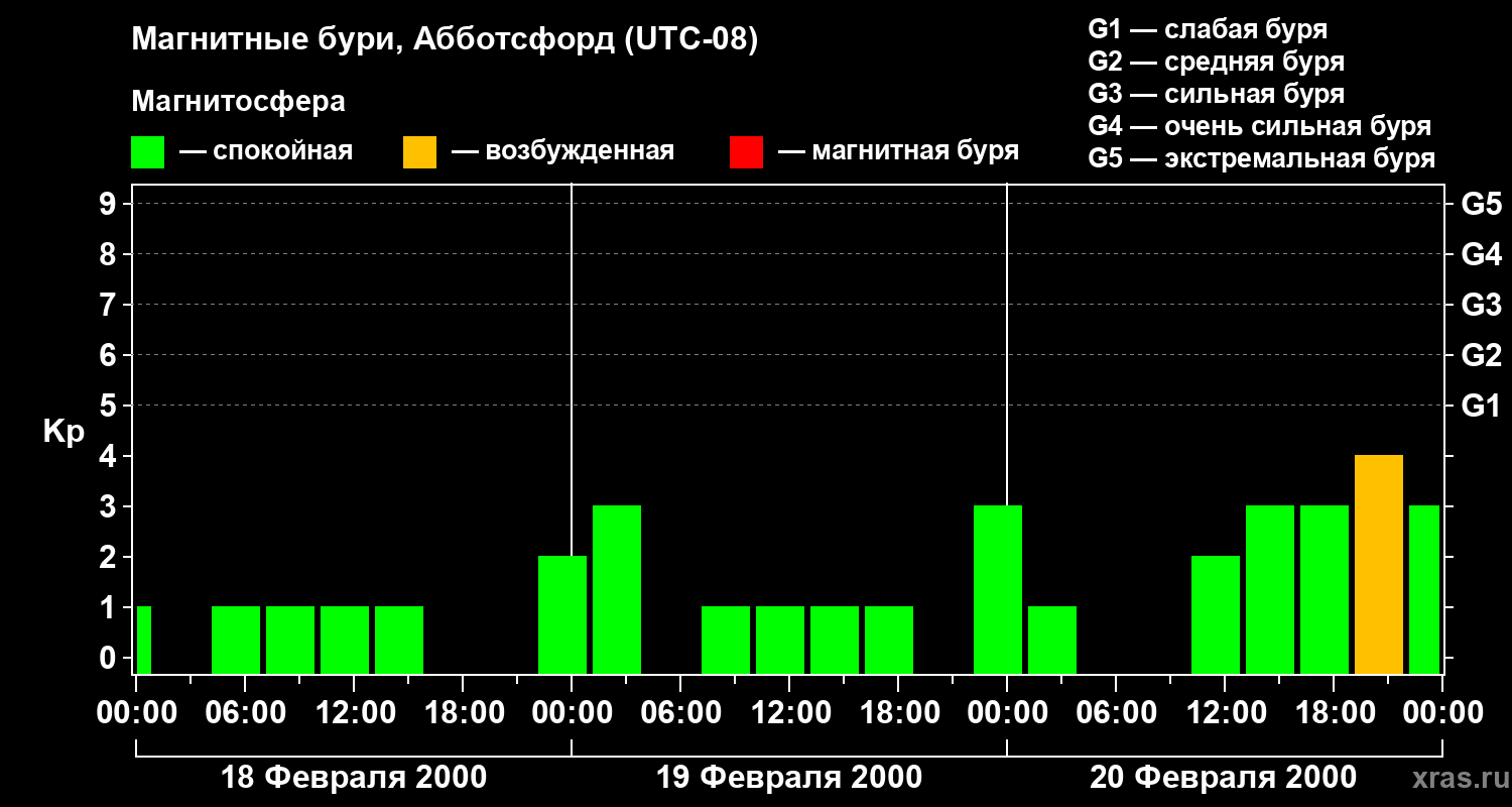 Магнитные бури в Абботсфорде — 20 февраля 2000 года