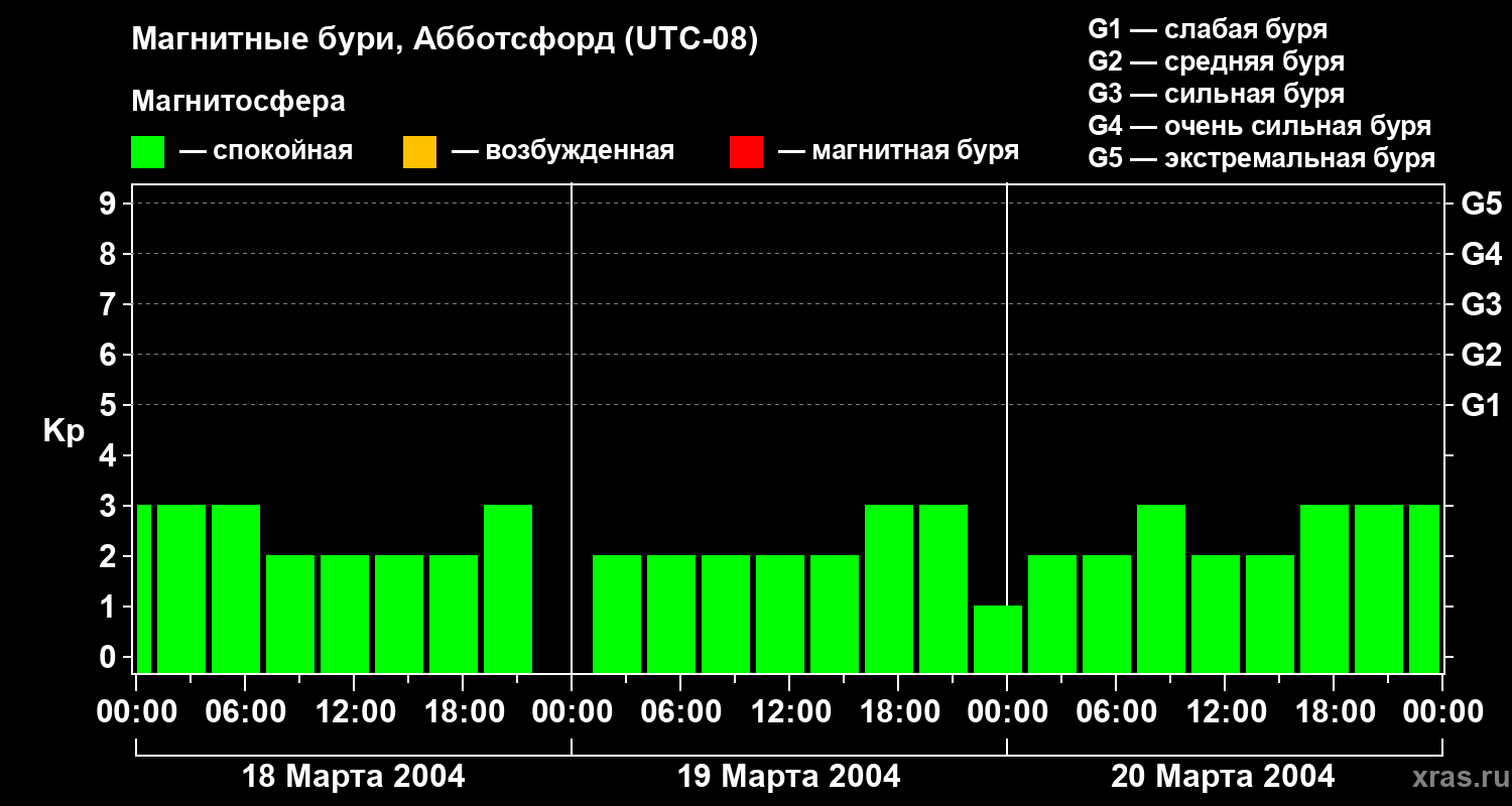 Магнитные бури в Абботсфорде — 20 марта 2004 года