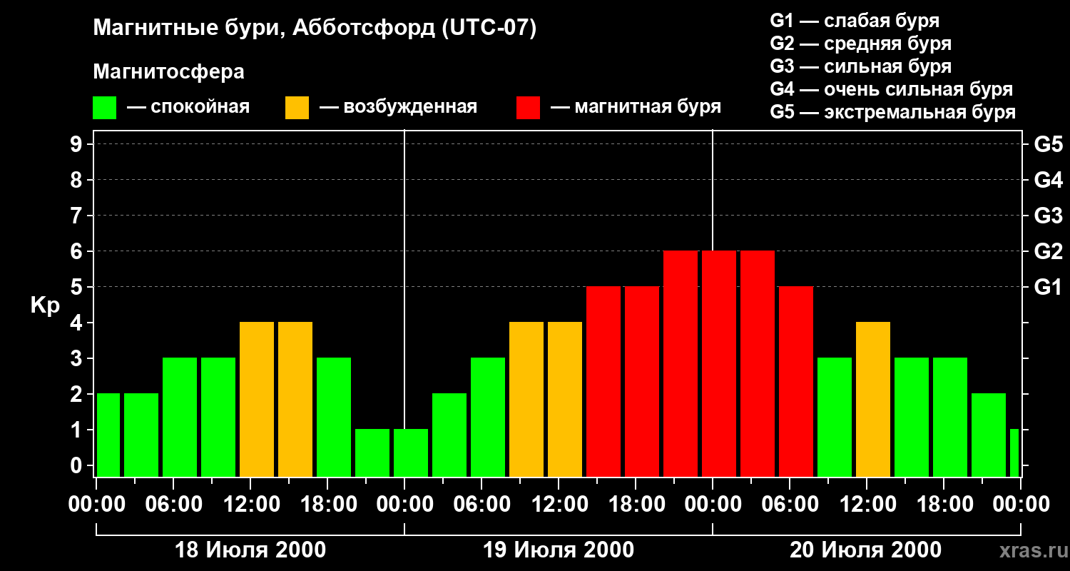 Магнитные бури в Абботсфорде 20 июля 2000 года