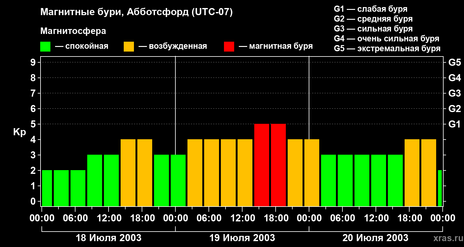 Магнитные бури в Абботсфорде — 20 июля 2003 года