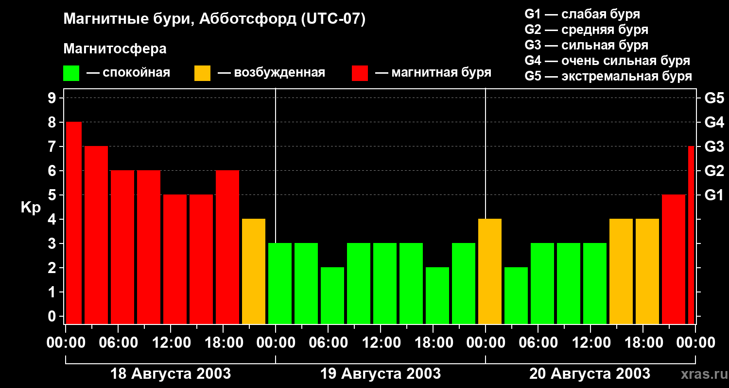 Магнитные бури в Абботсфорде — 20 августа 2003 года