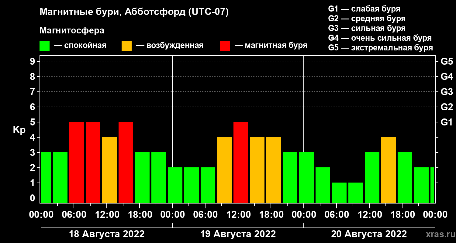 Магнитные бури в Абботсфорде 20 августа 2022 года