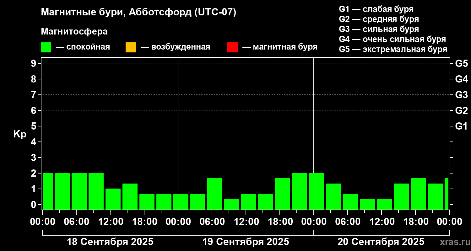 Магнитные бури в Абботсфорде 20 сентября 2025 года