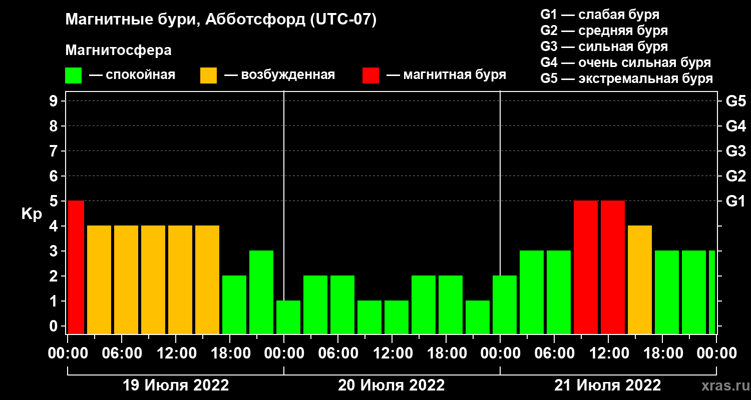 Магнитные бури в Абботсфорде 21 июля 2022 года