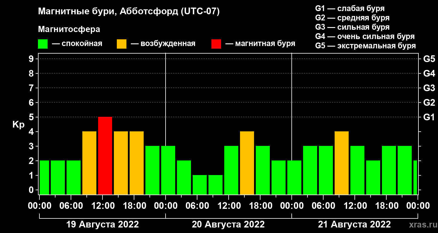 Магнитные бури в Абботсфорде 21 августа 2022 года