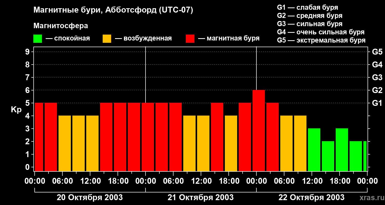 Магнитные бури в Абботсфорде — 22 октября 2003 года