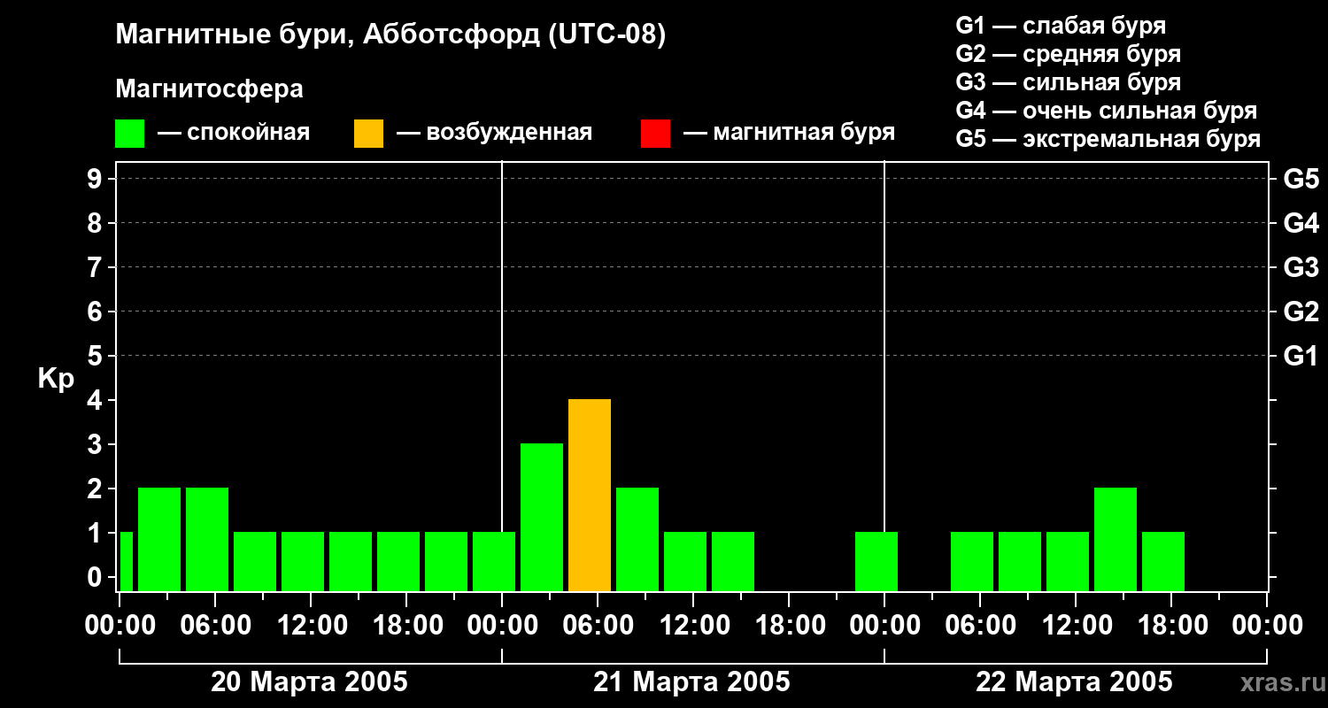 Магнитные бури в Абботсфорде 22 марта 2005 года