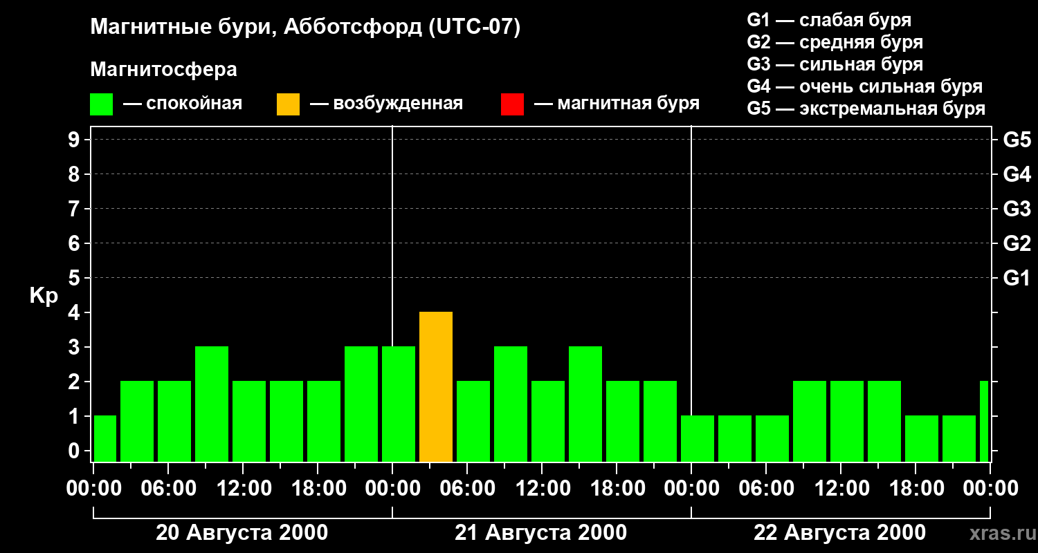 Магнитные бури в Абботсфорде 22 августа 2000 года