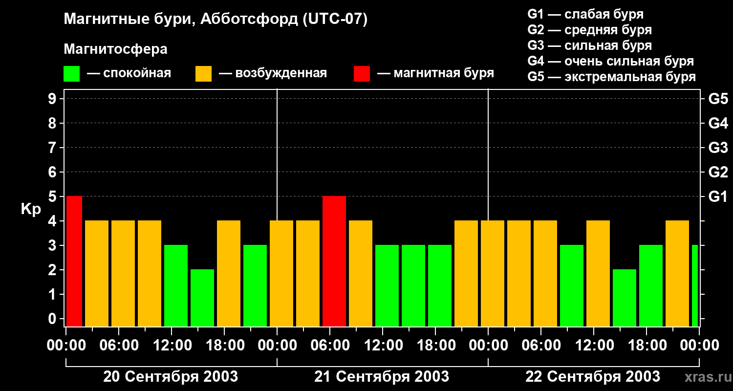 Магнитные бури в Абботсфорде 22 сентября 2003 года
