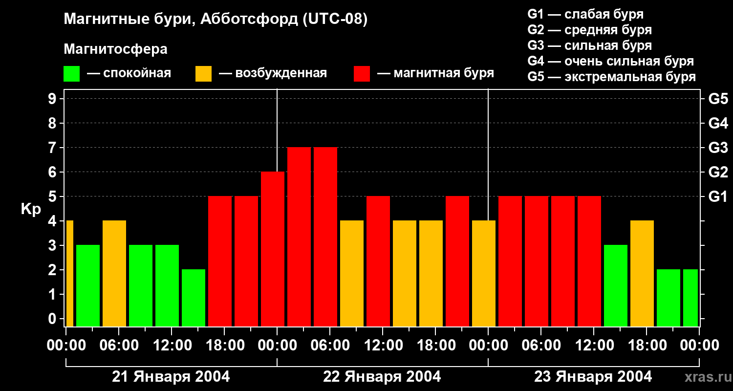 Магнитные бури в Абботсфорде — 23 января 2004 года