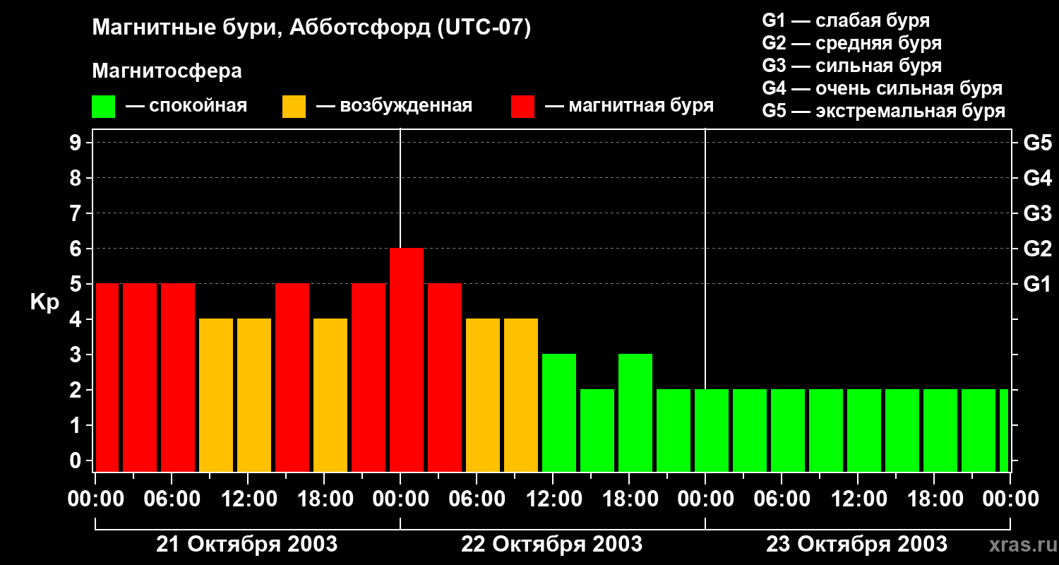 Магнитные бури в Абботсфорде 23 октября 2003 года