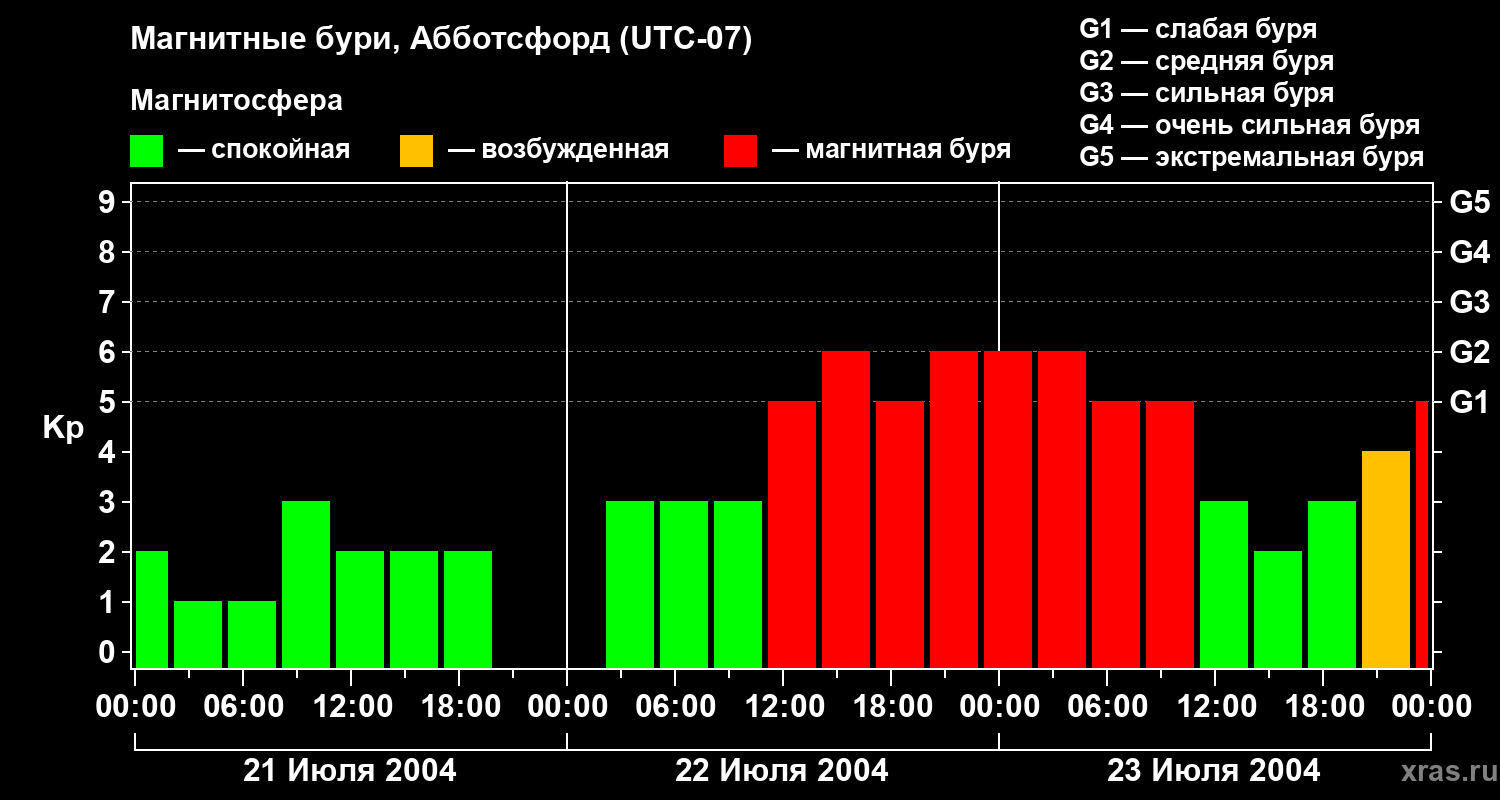 Магнитные бури в Абботсфорде — 23 июля 2004 года