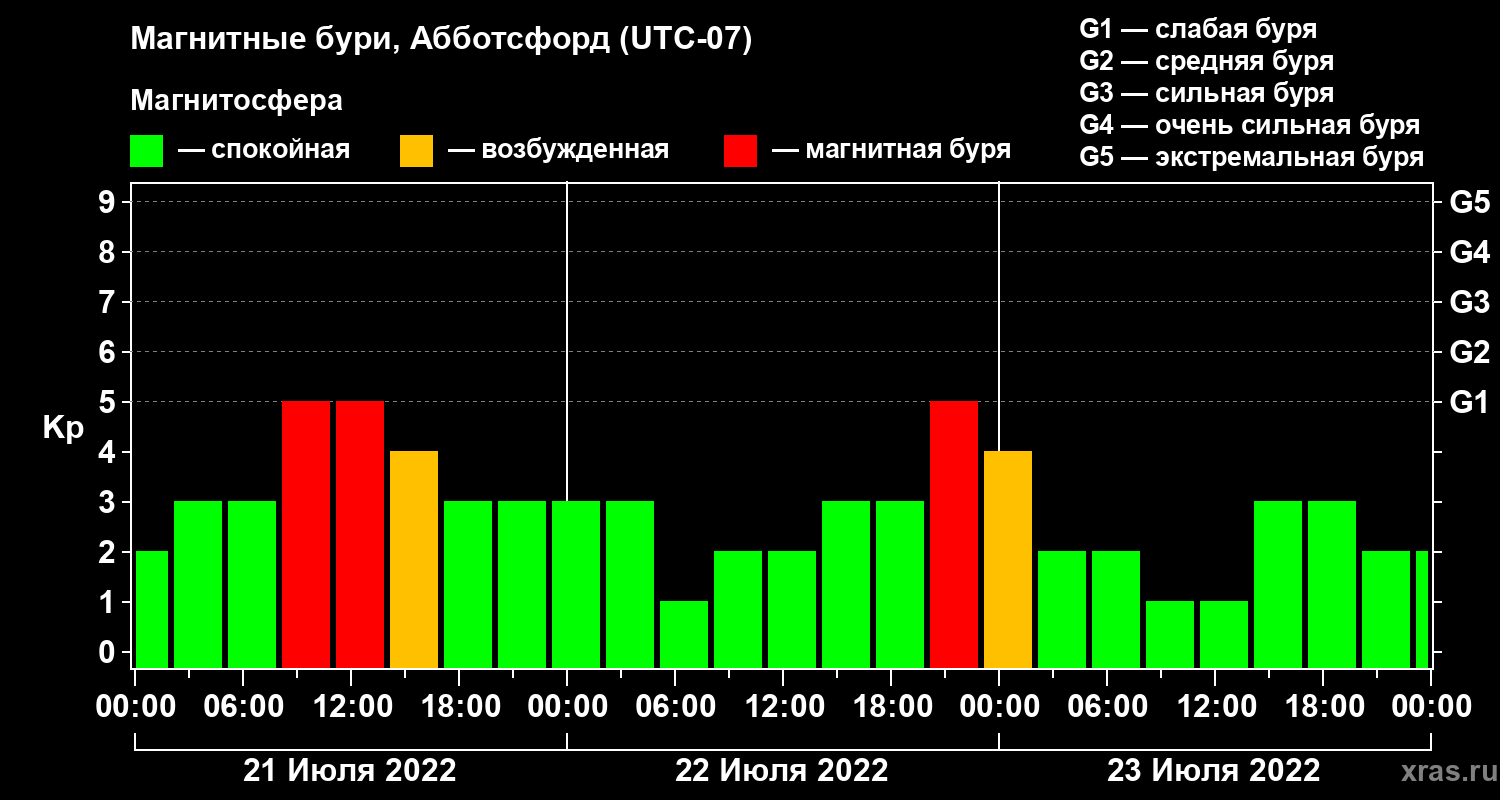Магнитные бури в Абботсфорде 23 июля 2022 года