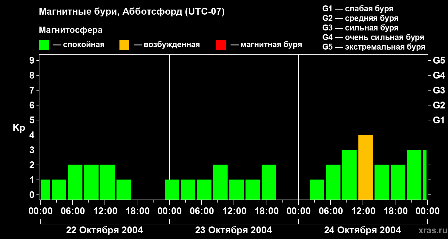 Магнитные бури в Абботсфорде 24 октября 2004 года
