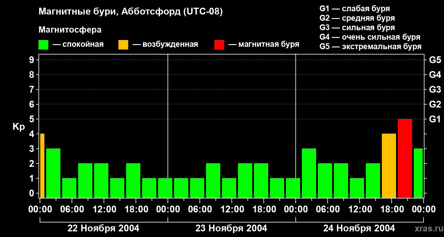 Магнитные бури в Абботсфорде 24 ноября 2004 года