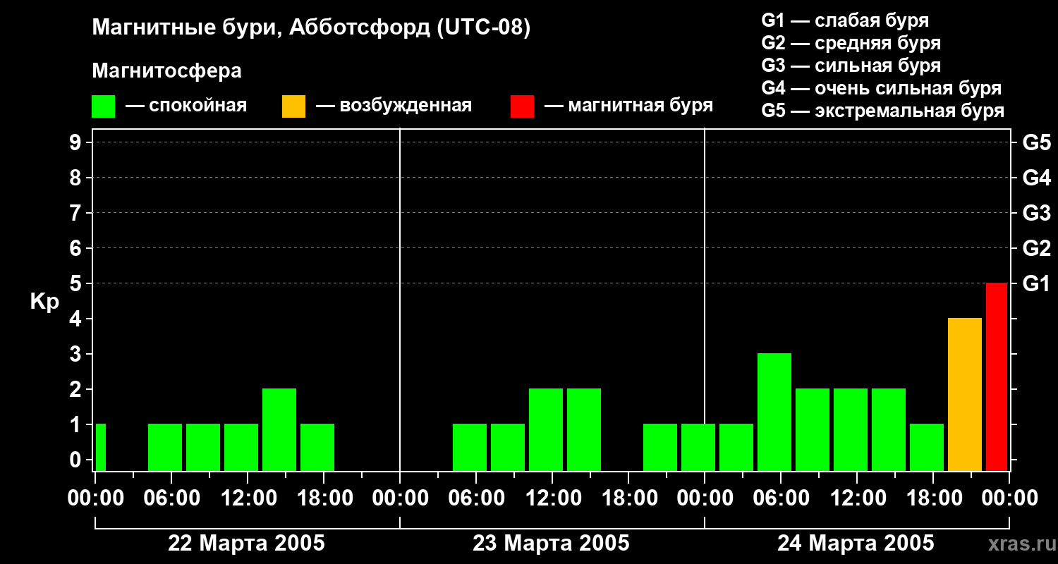 Магнитные бури в Абботсфорде 24 марта 2005 года