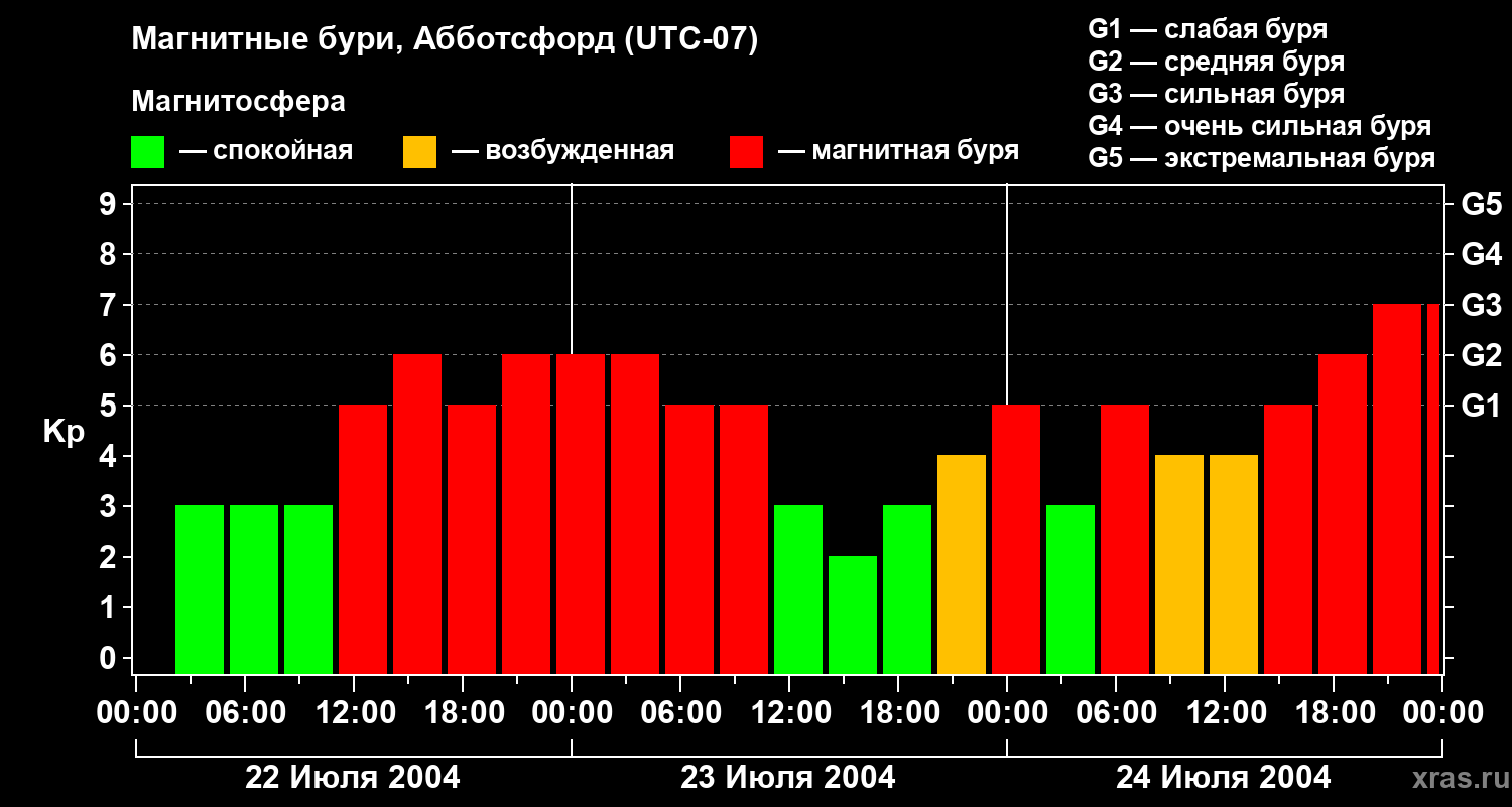 Магнитные бури в Абботсфорде 24 июля 2004 года