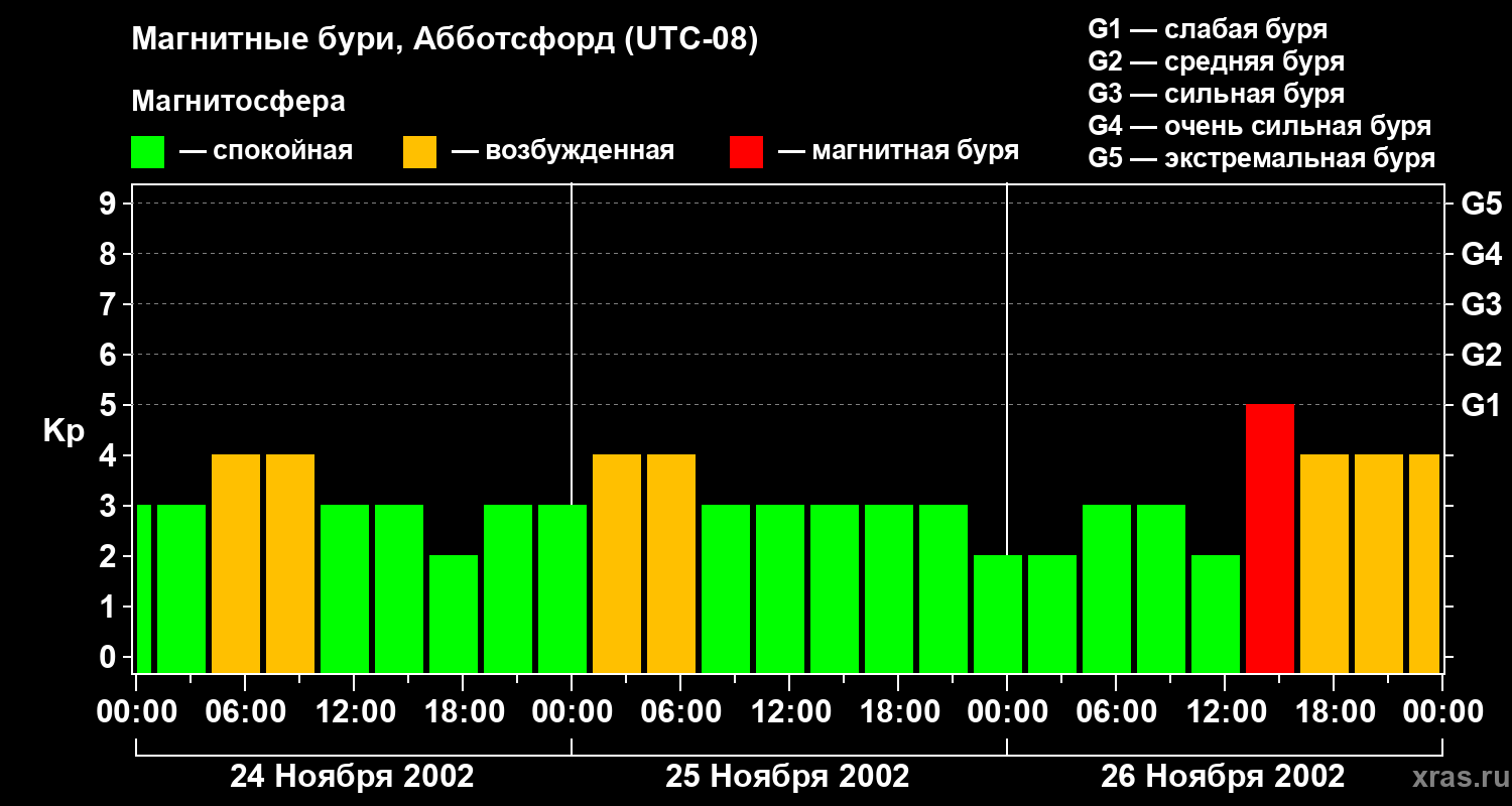 Магнитные бури в Абботсфорде 26 ноября 2002 года