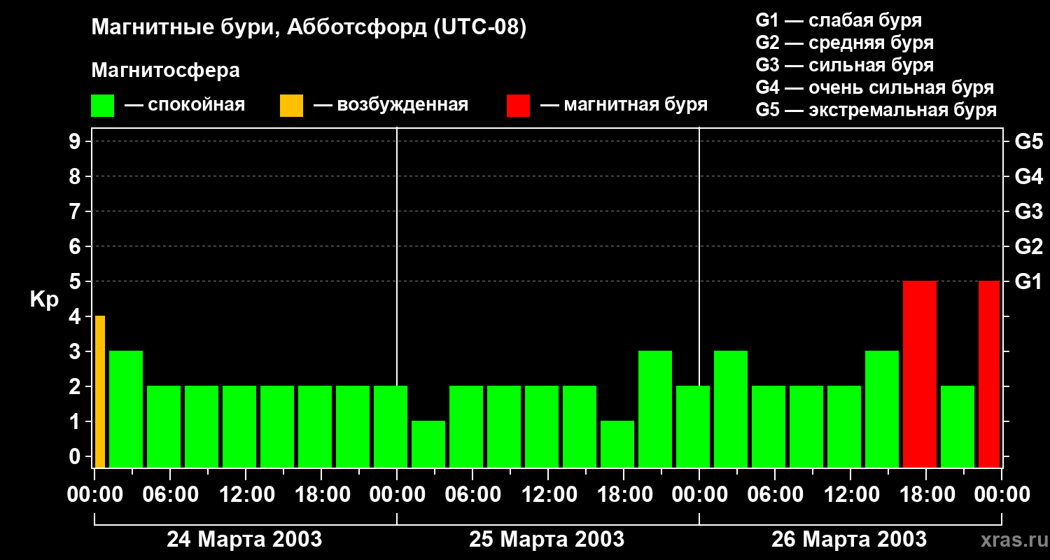 Магнитные бури в Абботсфорде — 26 марта 2003 года