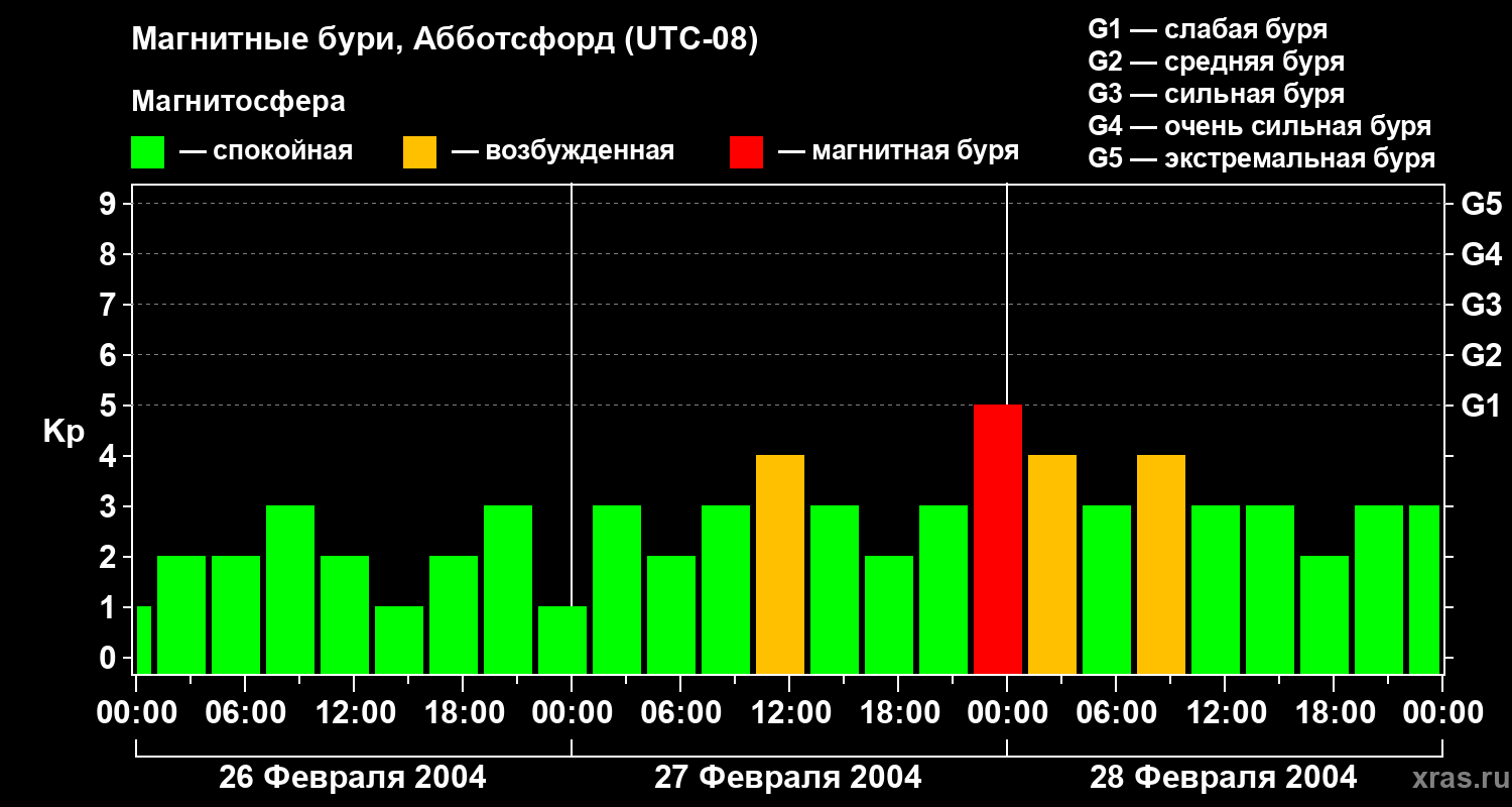 Магнитные бури в Абботсфорде — 28 февраля 2004 года