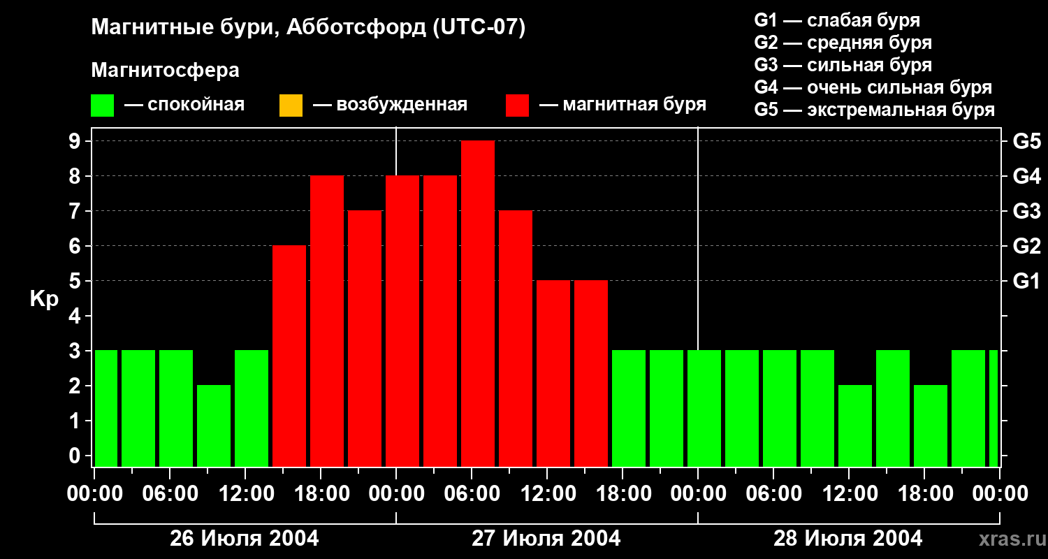 Магнитные бури в Абботсфорде — 28 июля 2004 года