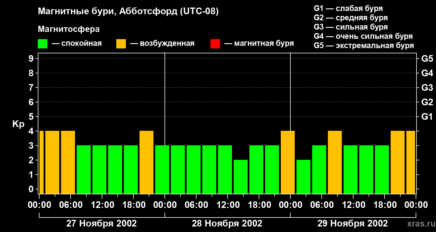 Магнитные бури в Абботсфорде 29 ноября 2002 года