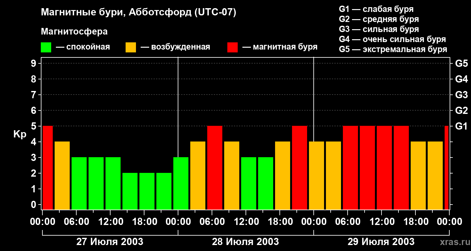 Магнитные бури в Абботсфорде — 29 июля 2003 года