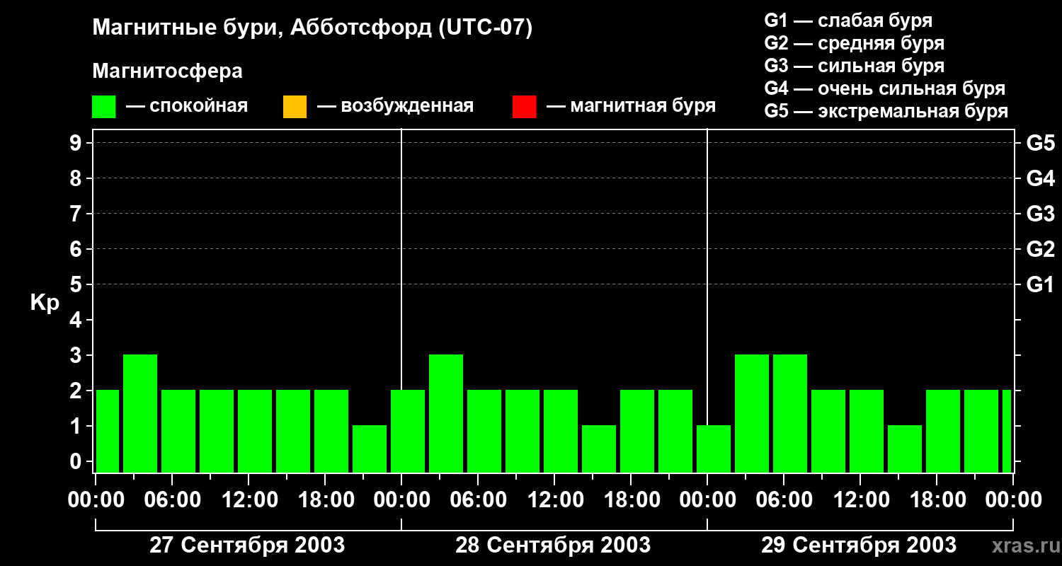 Магнитные бури в Абботсфорде — 29 сентября 2003 года